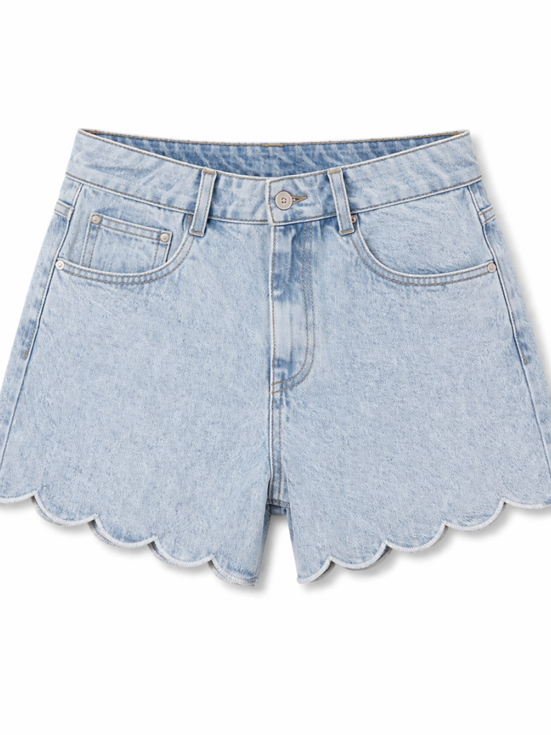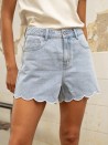Short en denim au style féminin et original, sublimé par sa finition ondulée qui apporte une touche délicate. Confortable et facile à porter, il est idéal pour les journées ensoleillées.