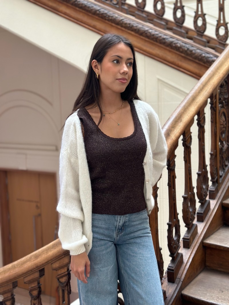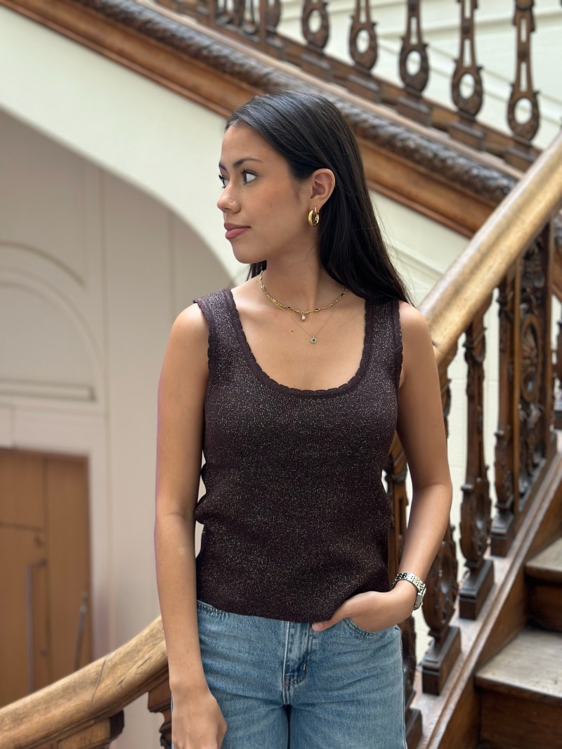 Élégant et lumineux, le top pailleté Zoé est une pièce idéale pour apporter une touche chic à vos tenues. Son tissu scintillant capte subtilement la lumière, tandis que sa coupe ajustée sublime la silhouette. Facile à porter seul ou sous une veste, il se marie aussi bien avec un jean pour un look casual qu’avec une jupe pour une allure plus habillée.