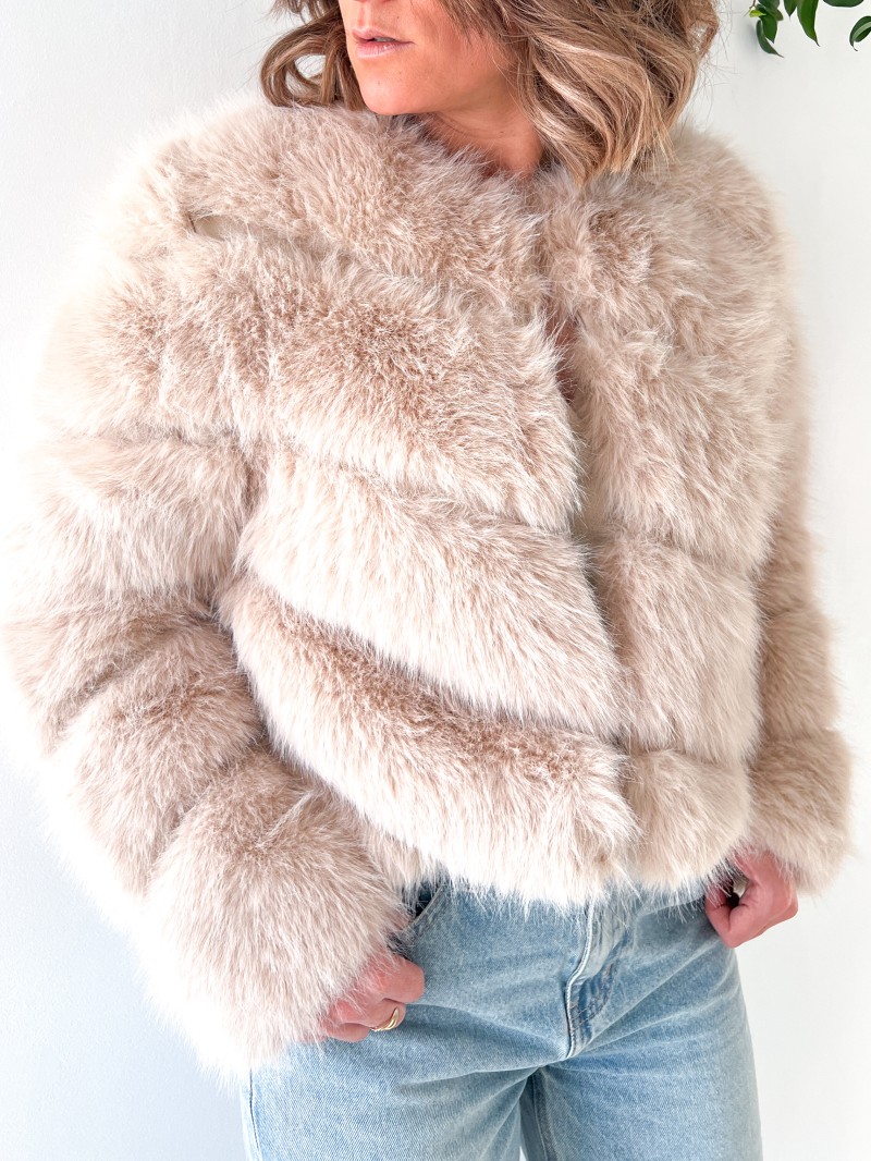Texture : Fourrure synthétique douce et luxueuse au toucher.