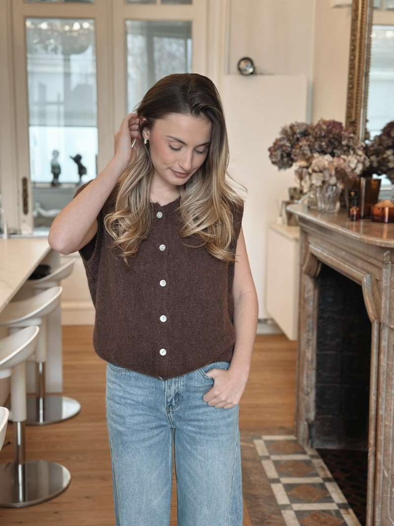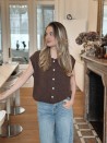 Un gilet tout doux, à la coupe ample et sans manches, avec une boutonnière frontale. Confort et style réunis dans une pièce tendance à porter en superposition ou à même la peau.