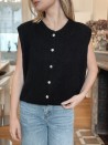 Un gilet tout doux, à la coupe ample et sans manches, avec une boutonnière frontale. Confort et style réunis dans une pièce tendance à porter en superposition ou à même la peau.