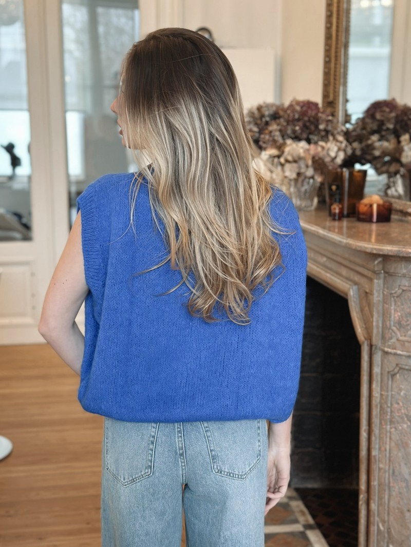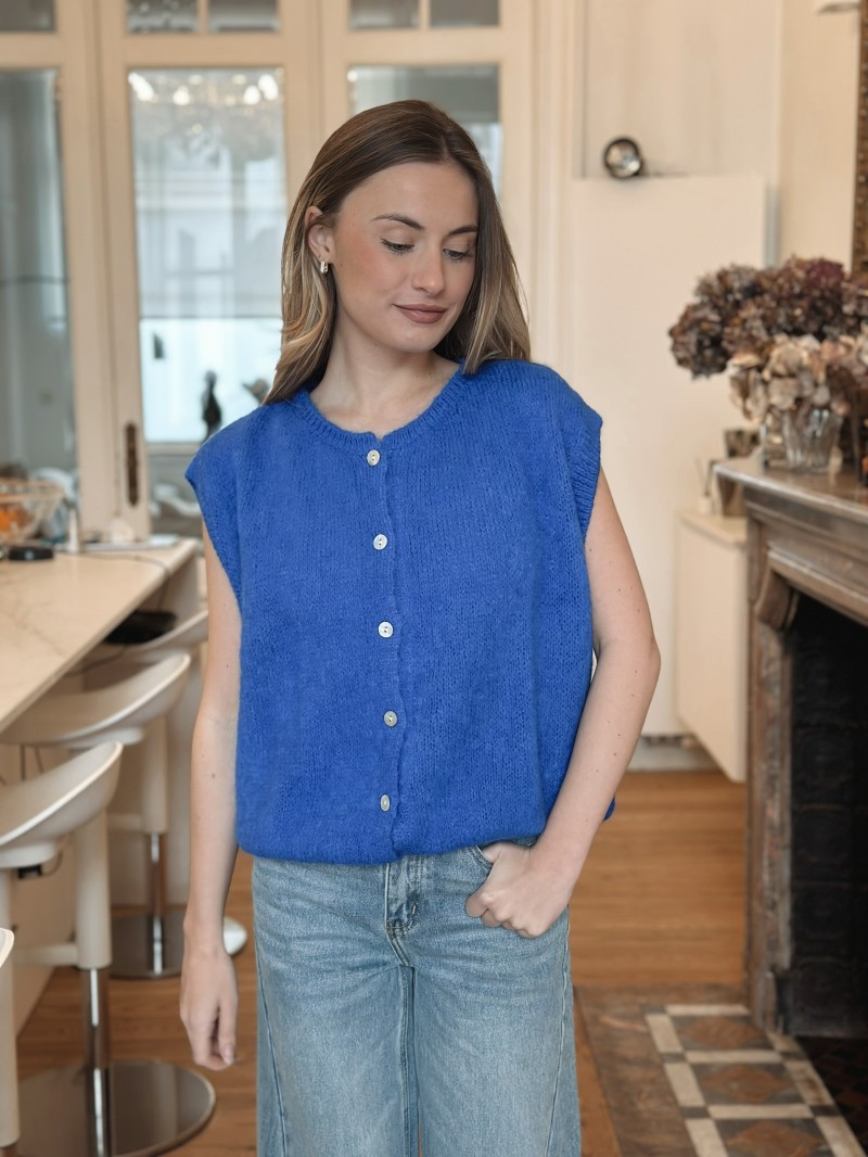Un gilet tout doux, à la coupe ample et sans manches, avec une boutonnière frontale. Confort et style réunis dans une pièce tendance à porter en superposition ou à même la peau.