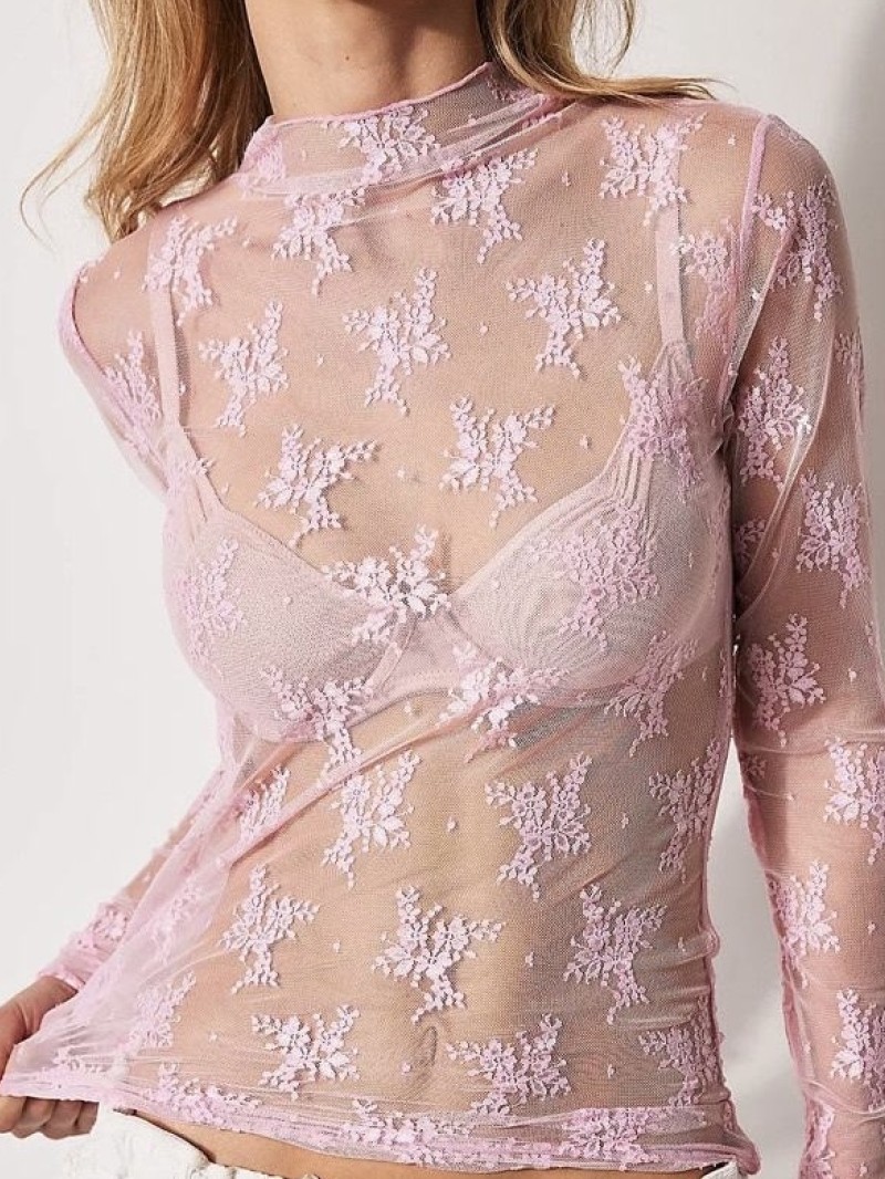 Delicate kanten blouse met een vrouwelijke en verfijnde stijl. De subtiele transparantie en de gedetailleerde afwerking maken dit een elegant kledingstuk, ideaal voor zowel een alledaagse look als een meer geklede outfit.