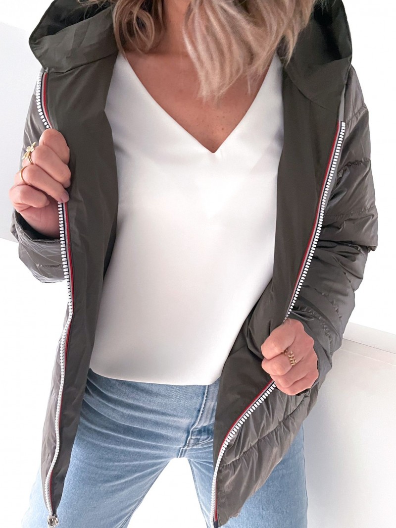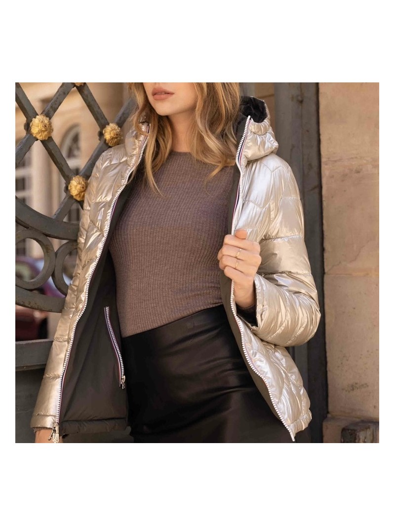Korte omkeerbare regenjas met capuchon Brons en zwart/ Brons en goud/ Brons en kaki