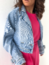 Het cropped spijkerjasje is het perfecte kledingstuk om je look een vrouwelijke en gedurfde touch te geven. Met zijn korte, getailleerde pasvorm, gerafelde details en metalen knopen geeft het een moderne draai aan het klassieke spijkerjasje. Het jack is gemaakt van 87% katoen en 13% polyester en combineert comfort met stijl. Het is verkrijgbaar in verwassen grijs en jeansblauw en kan gemakkelijk worden gedragen met een hoge taille jeans of een soepelvallende jurk voor een chique en trendy contrast. Beschikbare maten: XS tot L.