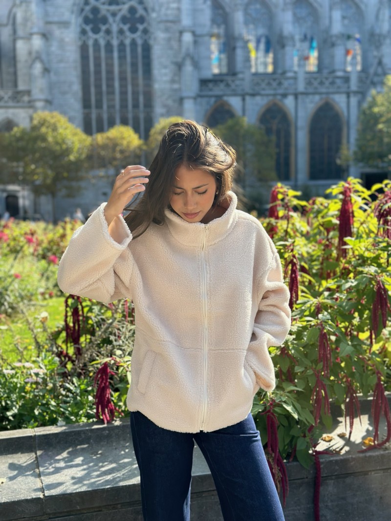 De warme en trendy Teddy Douce-jas is de perfecte metgezel om frisse dagen in stijl door te komen. De schapenvachtlook zorgt voor comfort en een moderne uitstraling, of je hem nu draagt op een casual jeans of een meer verzorgde look.