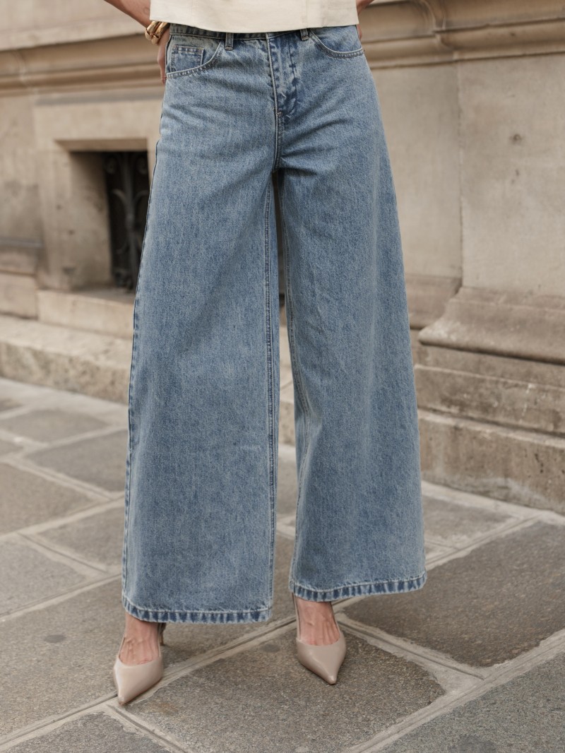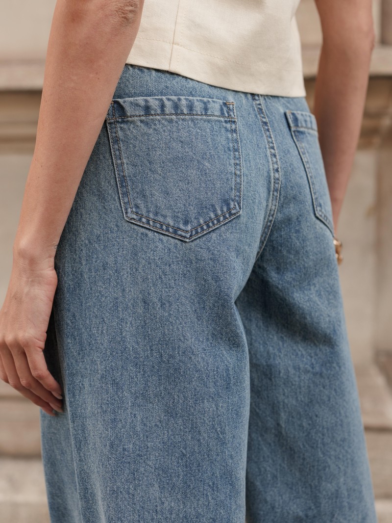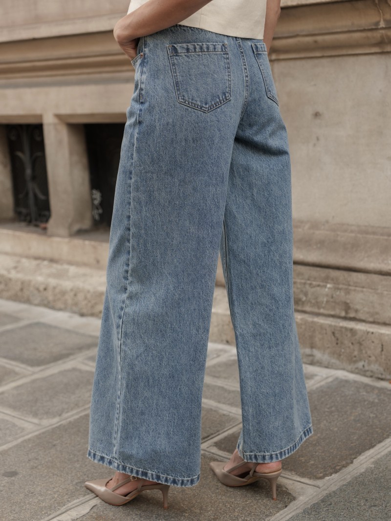 Zeer wijde jeans met een recht model en hoge taille. Een basic met een moderne, stijlvolle twist.