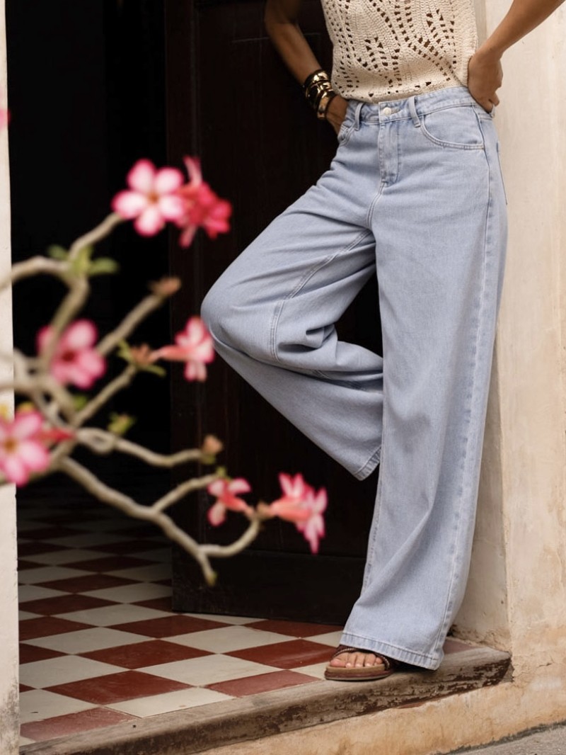 Zeer wijde jeans met een recht model en hoge taille. Een basic met een moderne, stijlvolle twist.