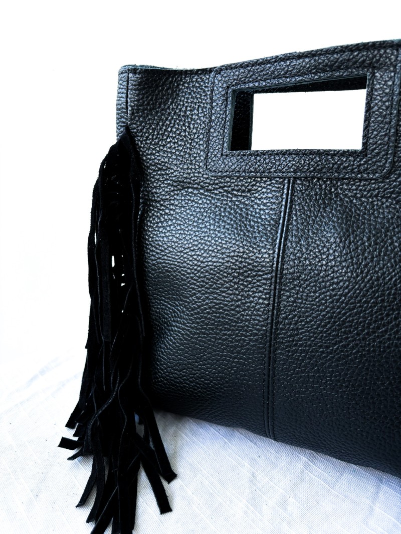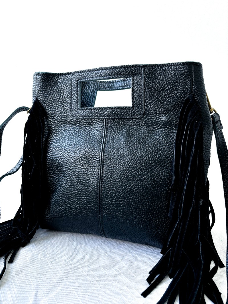 Ontdek de leren tas Mare, een uniek stuk dat elegantie en karakter combineert. Met de franjes aan de zijkant voegt hij een vleugje bohemian chic toe aan al je outfits. De tas is gemaakt van hoogwaardig mat leer en is slijtvast, soepel en verfijnd. Er zijn twee draagmogelijkheden: een kort geïntegreerd handvat en een verstelbare schouderriem voor optimaal draagcomfort. Dankzij de rechthoekige opening is hij gemakkelijk vast te houden en heb je snel toegang tot je benodigdheden. Ideaal voor een elegant avondje uit of om stijl toe te voegen aan je dagelijkse leven.