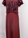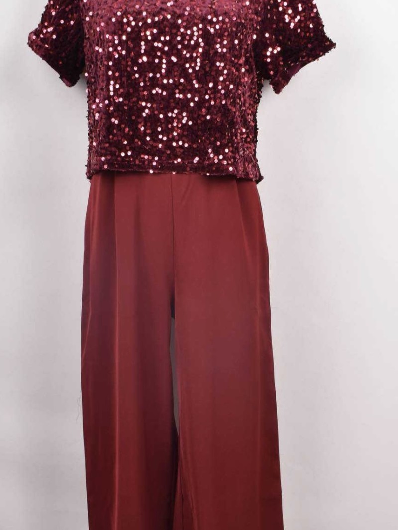 Straal met deSylvie-pak met pailletten, verkrijgbaar in marineblauw en bordeauxrood. Het glinsterende bovenstuk met pailletten en de soepel vallende broek verlengen het silhouet op elegante wijze. De discrete opening aan de achterkant zorgt voor een verfijnde en moderne touch, ideaal voor uw avonden en evenementen.