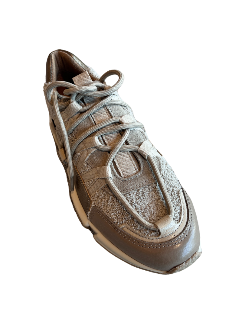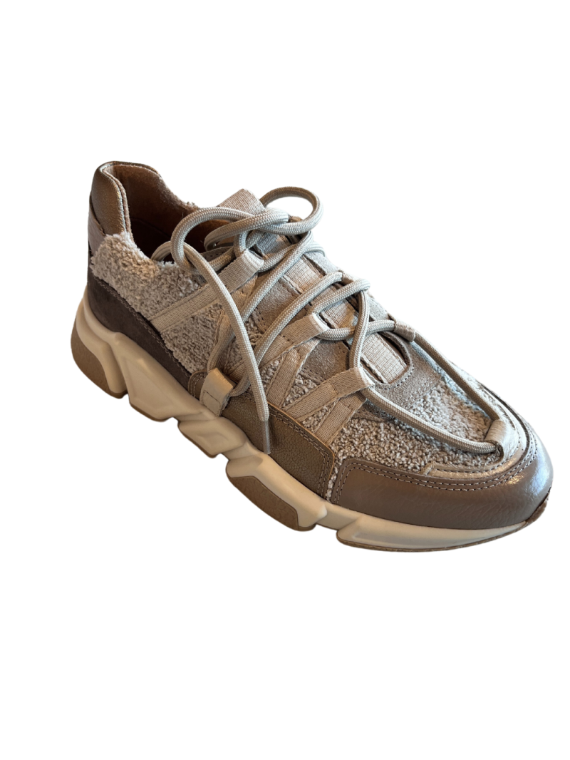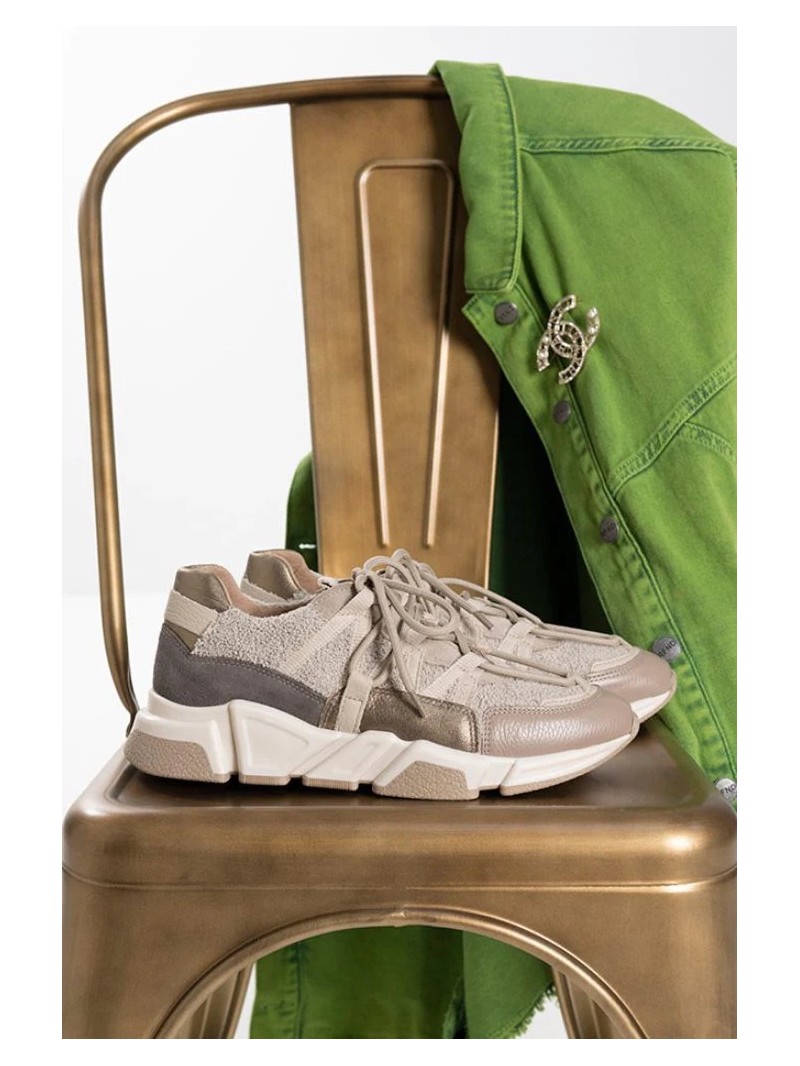 Deze sneakers zijn net iets specialer door de veter die ook over de neus loopt.Voor vrouwen met oog voor detail.Wij vinden ze geweldig!Deze sneaker is gemaakt van leer en badstof aan de buitenkant en volledig van leer aan de binnenkant.De schoen heeft een uitneembare leren binnenzool voor extra comfort.Doe mee met de trend!