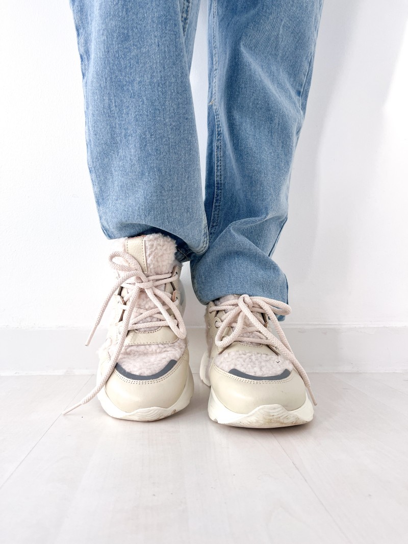 Off-white sneaker met pluche