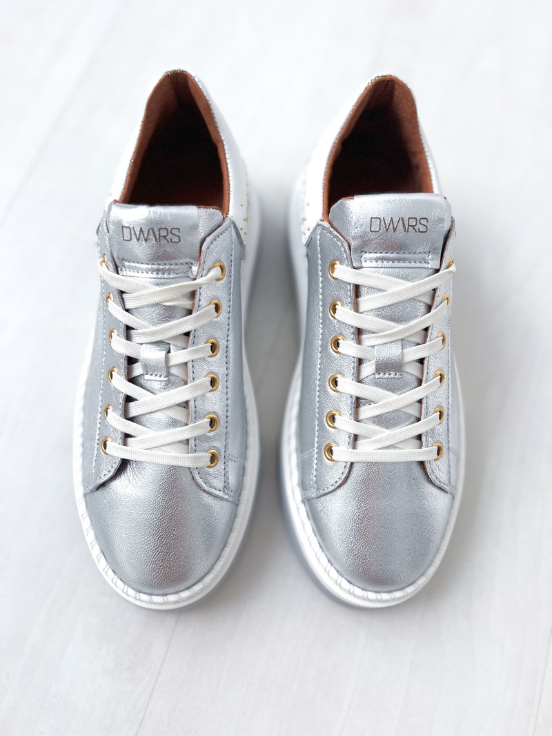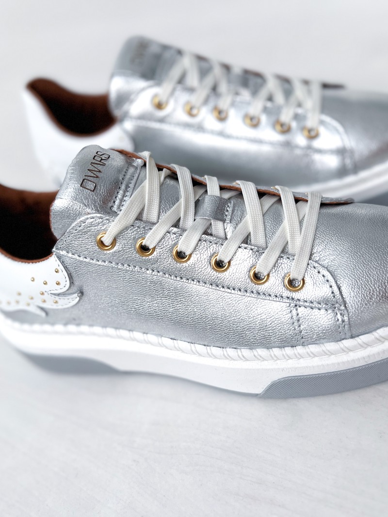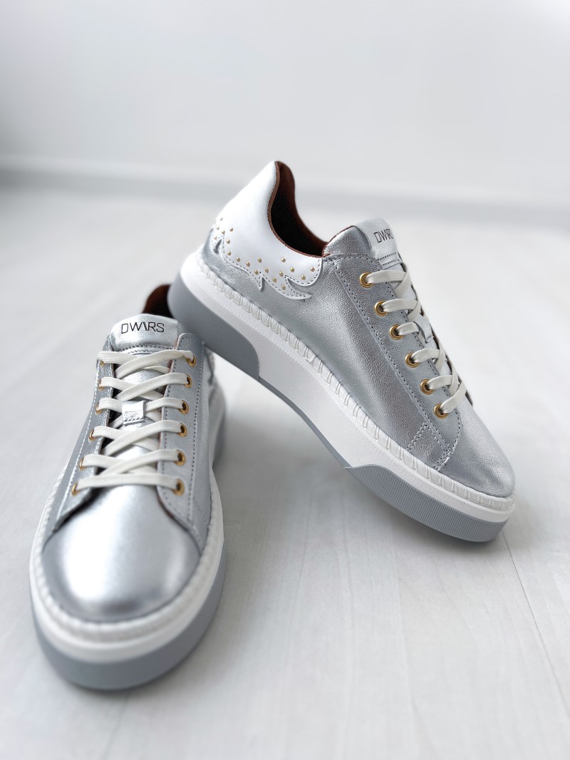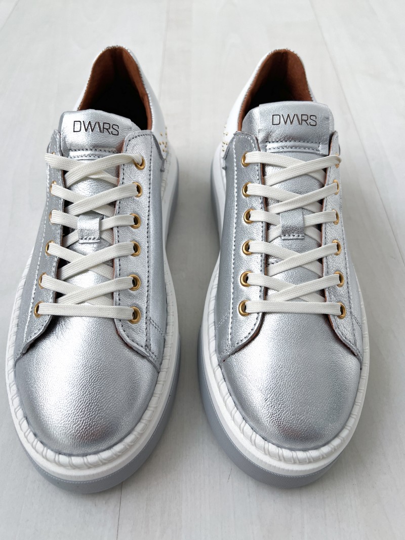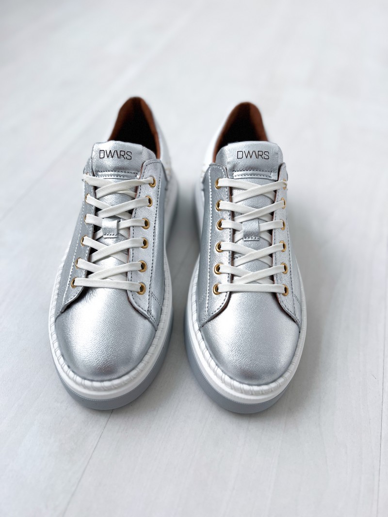 Ontdek het nieuwste van DWRS met de DWRS CRUZ zilver/witte sneakers. Deze Cruz-sneaker met metallic details is een must-have voor je garderobe. Deze comfortabele en elegante schoenen zijn perfect om elke outfit af te maken met hun zilveren kleur.