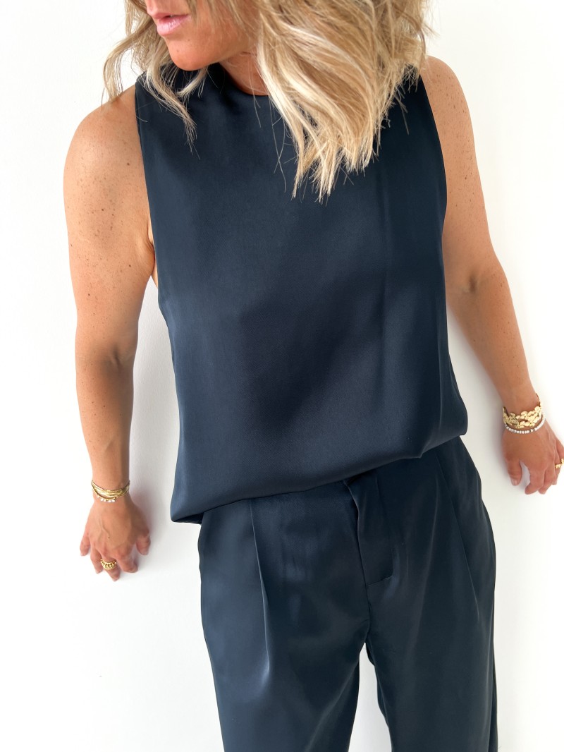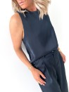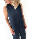 Ontdek elegantie met onze'Blouse Versatile Venezia', gemaakt in Italië. Verkrijgbaar in blauwzwart, champagne, marineblauw, salie, lichtroze en roestbruin, combineert deze blouse duurzaam comfort met een soepele pasvorm dankzij het 100% polyester materiaal. De hoge kraag en mouwloze ontwerp maken dit een verfijnd en veelzijdig kledingstuk, ideaal voor elke gelegenheid.