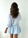 Een korte, soepelvallende en gestructureerde rok, ontworpen voor zonnige dagen. De licht geplooide bolle snit geeft hem een chique en originele uitstraling.