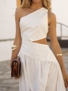 De elegante en gedurfde Sienna-jurk speelt in op asymmetrie voor een gegarandeerd wow-effect. De stof van 100% katoen zorgt voor comfort en lichtheid, terwijl de uitsnijding in de taille het silhouet subtiel benadrukt. Perfect voor uw zomeravonden of een chique, ontspannen evenement.