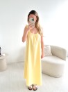 • Lange jurk met ruches aan de bandjes