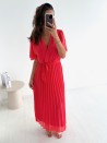 Een elegante, soepel vallende jurk met verfijnde plooien, perfect voor zomerse gelegenheden of een chique look voor elke dag. De overslagsnit accentueert het decolleté, terwijl de riem de taille kan worden aangepast voor een vrouwelijke en comfortabele look.