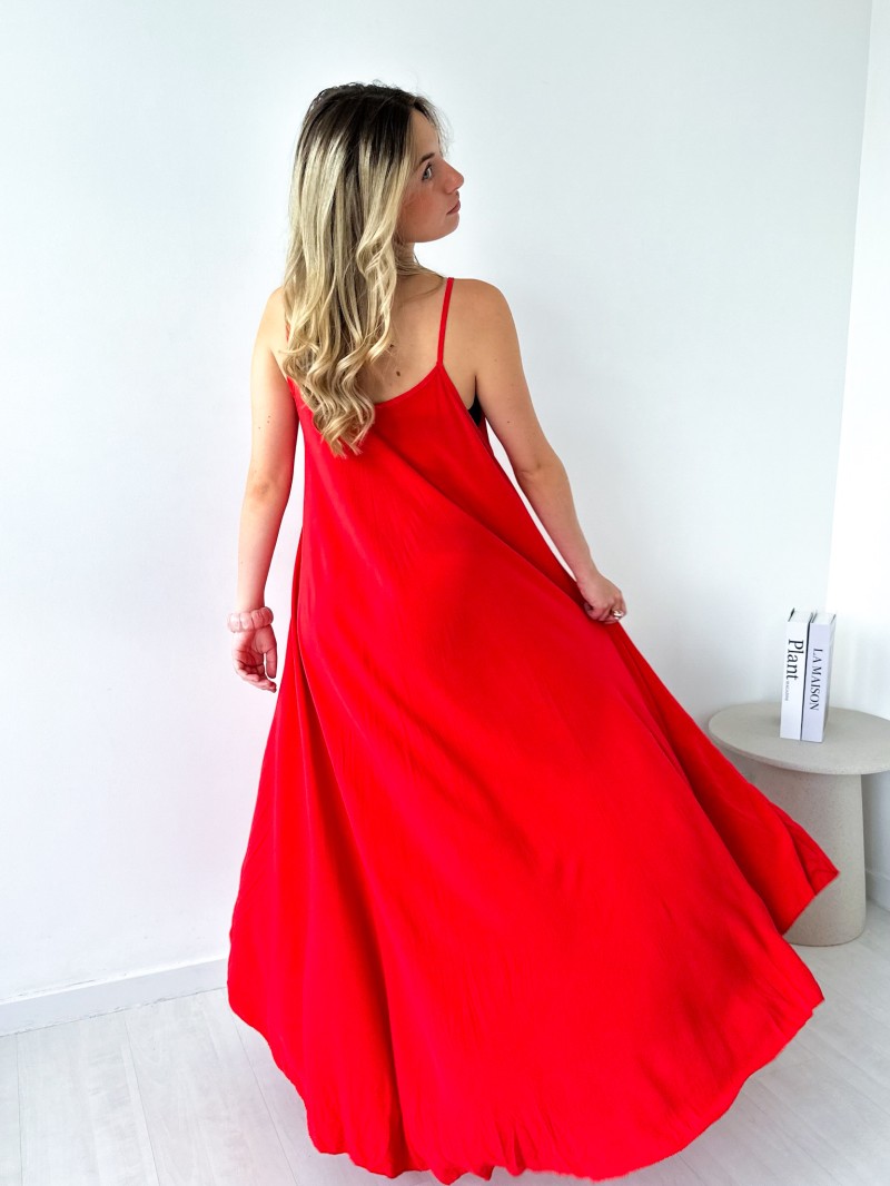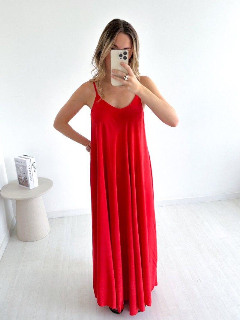 De Olivia-jurk is soepel, elegant en luchtig en onmisbaar voor zonnige dagen. De ruime en lichte snit volgt je bewegingen gracieus, terwijl de dunne bandjes een vrouwelijke en zomerse toets geven. Perfect voor een chique, ontspannen look, zowel op vakantie als in de stad.