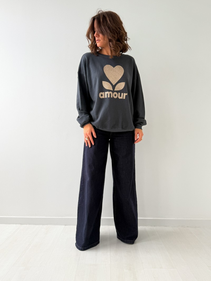 De Amour Sweat / Pullover is een eerbetoon aan eenvoud en genegenheid, verkrijgbaar in verschillende kleuren voor elke stijl. Met zijn grote hartenprint en het woord 'love' onderaan, vat dit ontwerp de essentie van positiviteit en tederheid. Dit sweatshirt is gemaakt van een zachte, comfortabele stof en is ideaal voor casual dagen of als dagelijkse boodschap van liefde. Perfect voor een knusse look, het combineert mode en comfort.