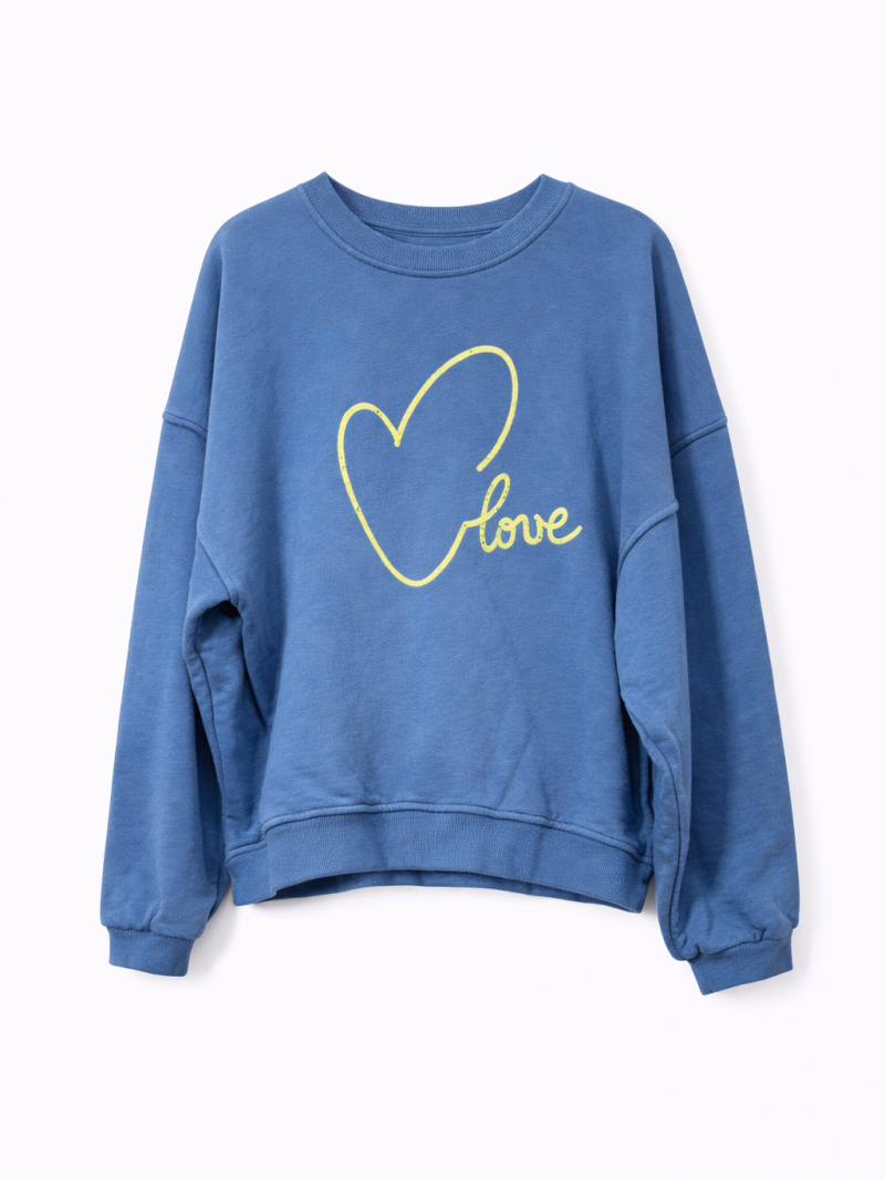 Comfortabel gesneden sweatshirt met hartillustratie en 'love'-opschrift op de voorkant.