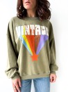 Comfortabel sweatshirt met het opschrift 'VINTAGE' en een grafische illustratie van een veelkleurige ster op de voorkant.