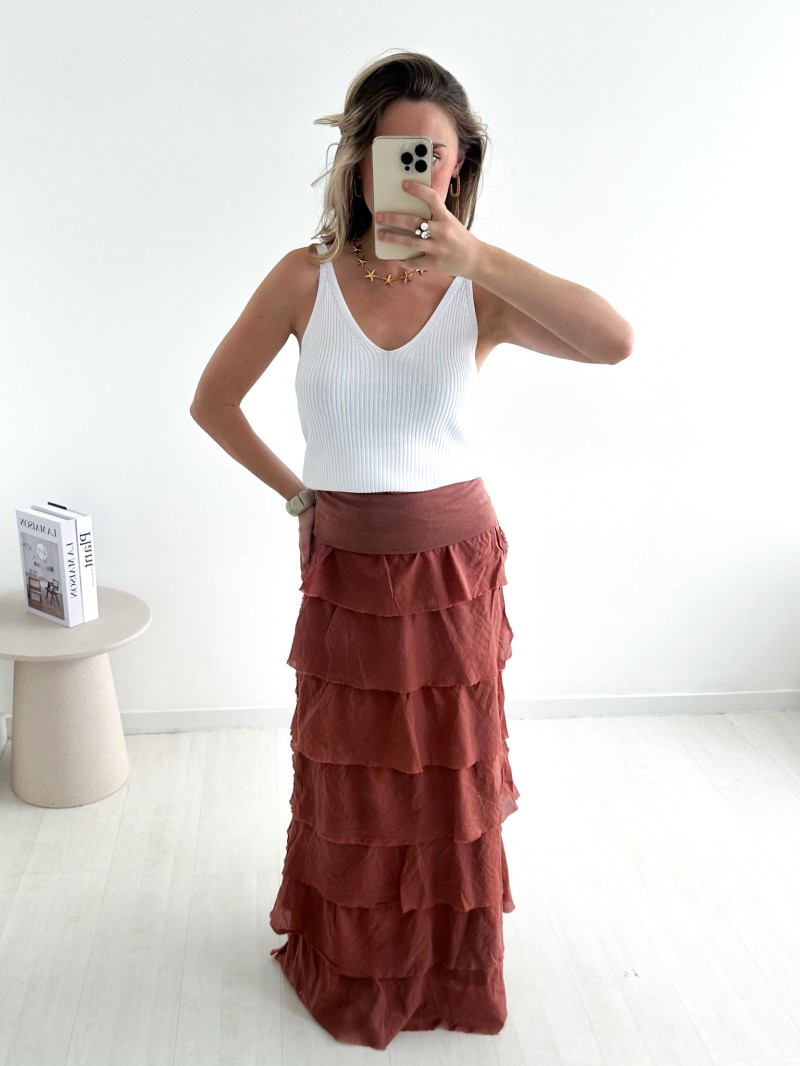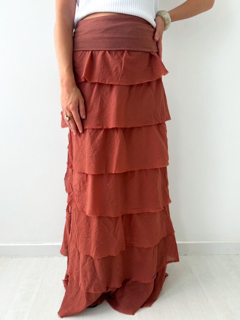 • Lange rok met gelaagde volants
